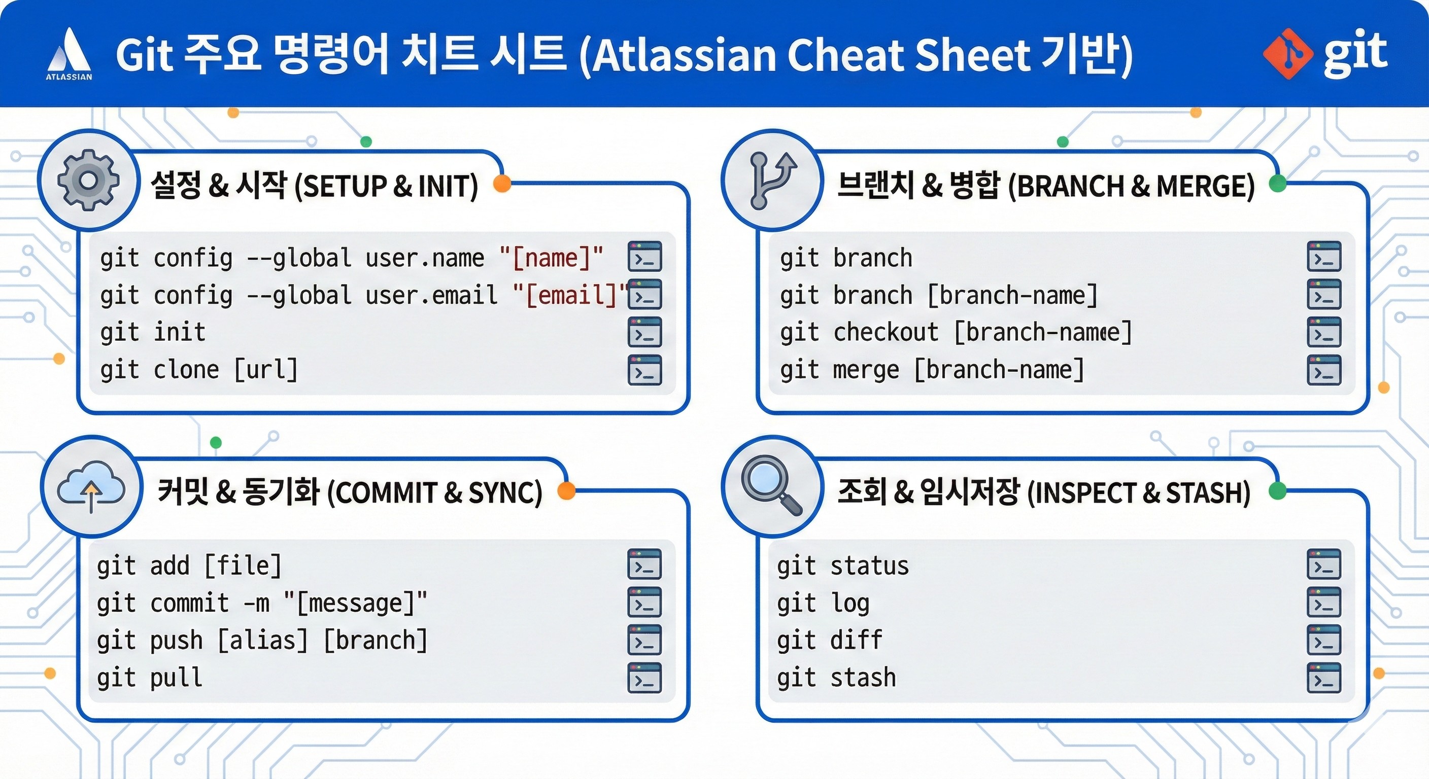 자주 사용하는 vi/vim 명령어들을 정리한 치트 시트입니다. 각 명령어의 기본 사용법을 빠르게 찾아볼 수 있습니다.